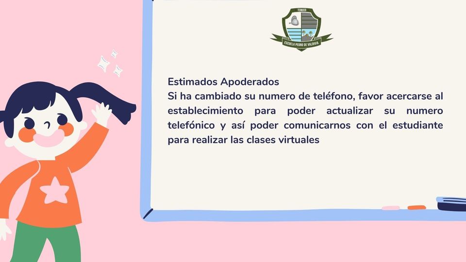 Si ha cambiado su numero de teléfono, favor acercarse al establecimiento para poder actualizar su numero telefónico y así poder comunicarnos con el apoderado o el estudiante para la realización de las clases virtuales