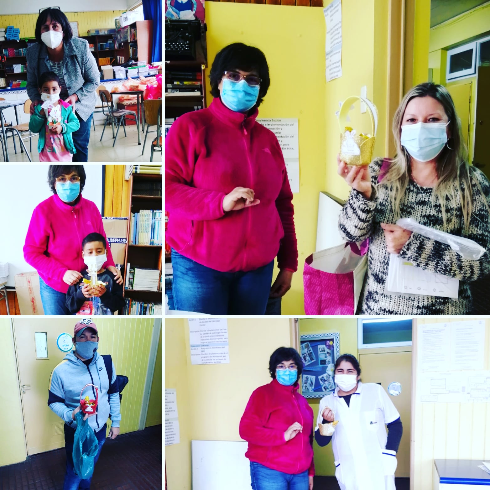 Las Educadoras de Párvulo Ana Waleska Pincheira del Nivel de Transición 1 y Gloria Atala, le ayudaron al conejito de Pascua a entregar sus canastas con huevitos a los niños y niñas de Pre-Básica
