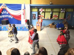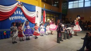 Para cerrar la semana de actividades de fiestas patrias, como cada año, se organizó una ceremonia de Gala Patriótica en donde todos los cursos prepararon una muestra de bailes típicos de las zonas norte, centro y sur de nuestro país, en ella también participaron los alumnos que se representaron en el Saludo a la Patria realizado en la plaza Aníbal Pinto, quienes nos deleitaron con una muestra cuequera, en la ocasión se invitó a bailar nuestra danza nacional a las vistas y apoderados presentes.