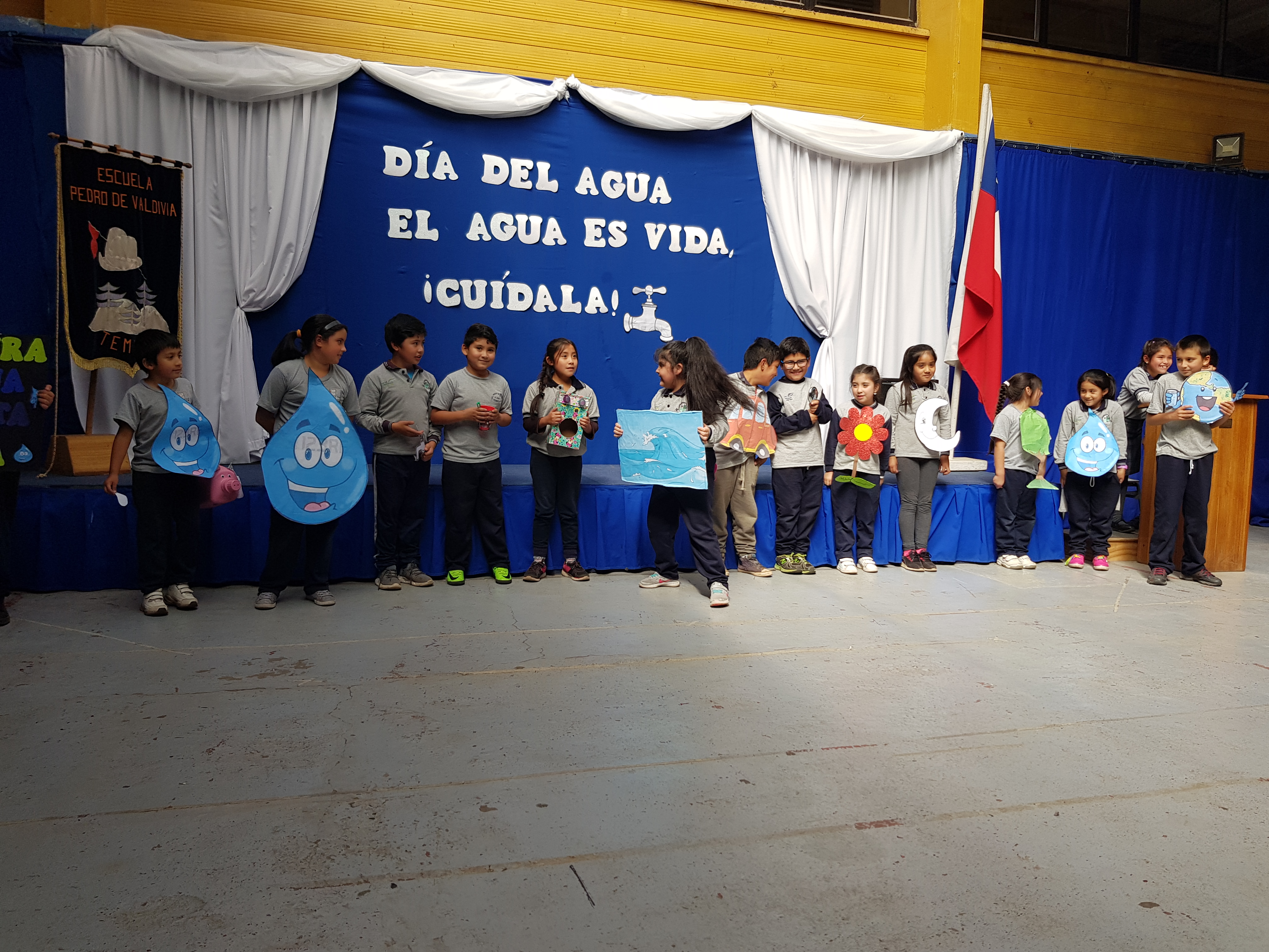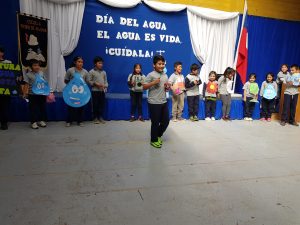 Se realiza un acto cívico para celebra el día mundial del agua, a cargo de la Profesora Eugenia Quilodran y el curso 3ro año; Los alumnos bailaron una canción llamada “el agua es vida, hay que cuidarla”, con un mensaje alusivo al cuidado y la importancia del vital elemento.