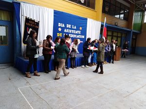 Para comenzar la semana se hace un acto para celebrar el día de los Asistentes de la Educación, se le dio un presente a los asistentes, junto con un desayuno en su honor.