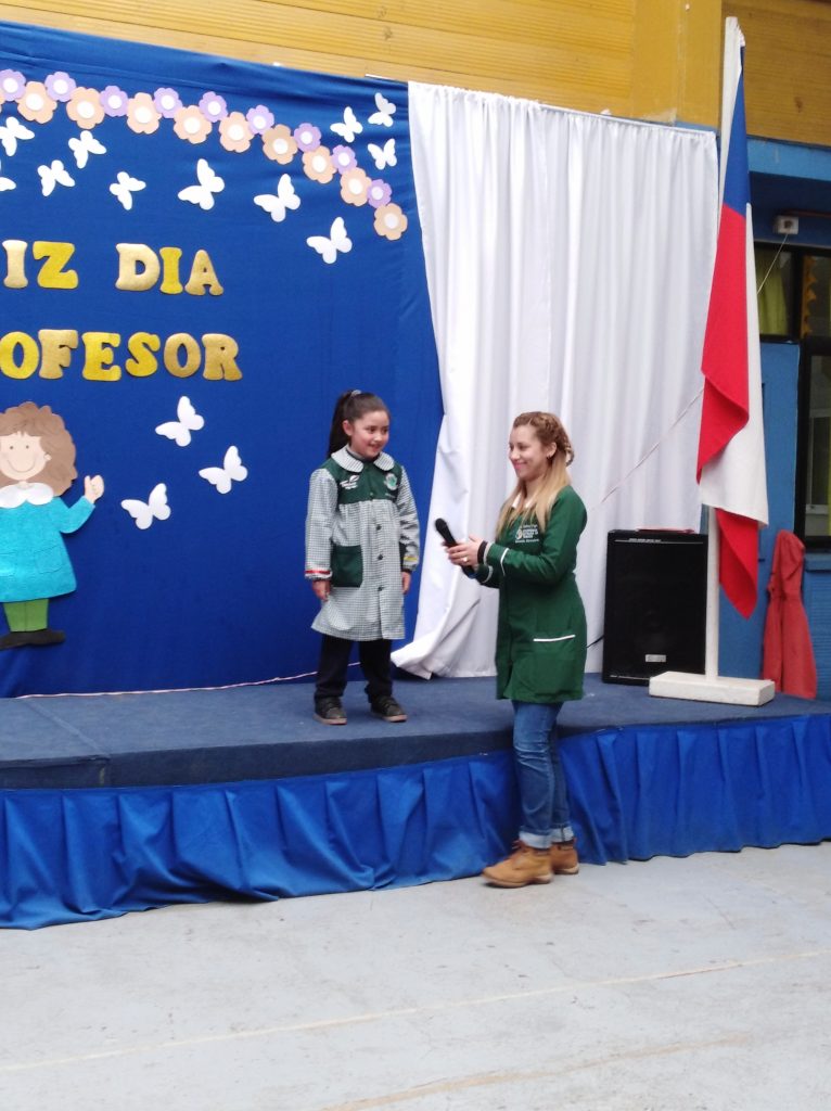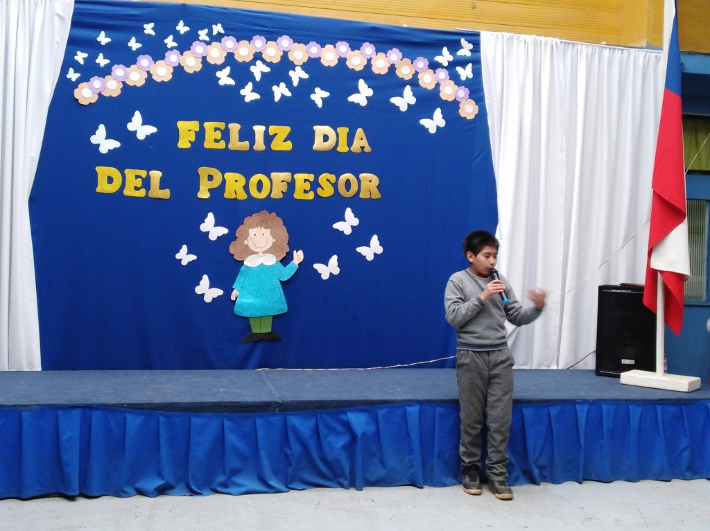 Se organiza una ceremonia para celebrar el día del profesor, organizada por el Centro General de Alumnos, Las estudiantes de 8vo básico quisieron dedicarle una canción a sus queridos profesoras, las estudiantes de Cuarto básico quisieron homenajearles con un poema dedicado a ellos y los estudiantes de interpretaron un baile llamado el profesor cha cha cha.
