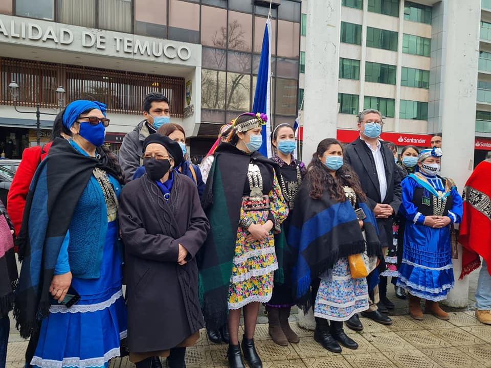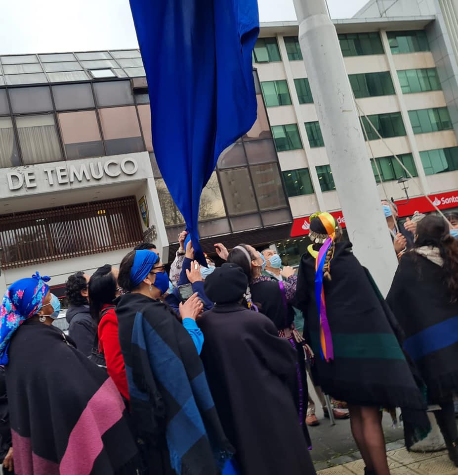 Con motivo del Día Internacional de la mujer indígena se realizó un significativo acto en el hall de la Municipalidad de Temuco y a continuación fue izada la bandera mapuche wenulfe, en la plaza de armas de la comuna.