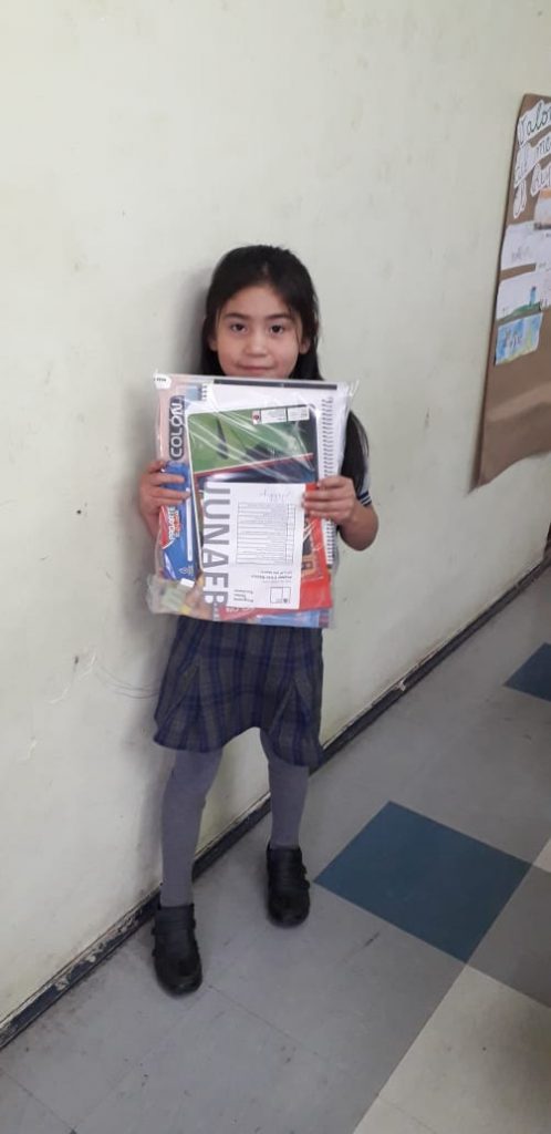 Se realiza la entrega de materiales Junaeb a los estudiantes del establecimiento desde los cursos de Primer año Básico a Octavo año Básico, los cual en ellos traen dos cuadernos universitario, un cuaderno collage, 12 lápices de colores, tempera y pincel, goma, sacapuntas, pegamentos y regla de 30cm.