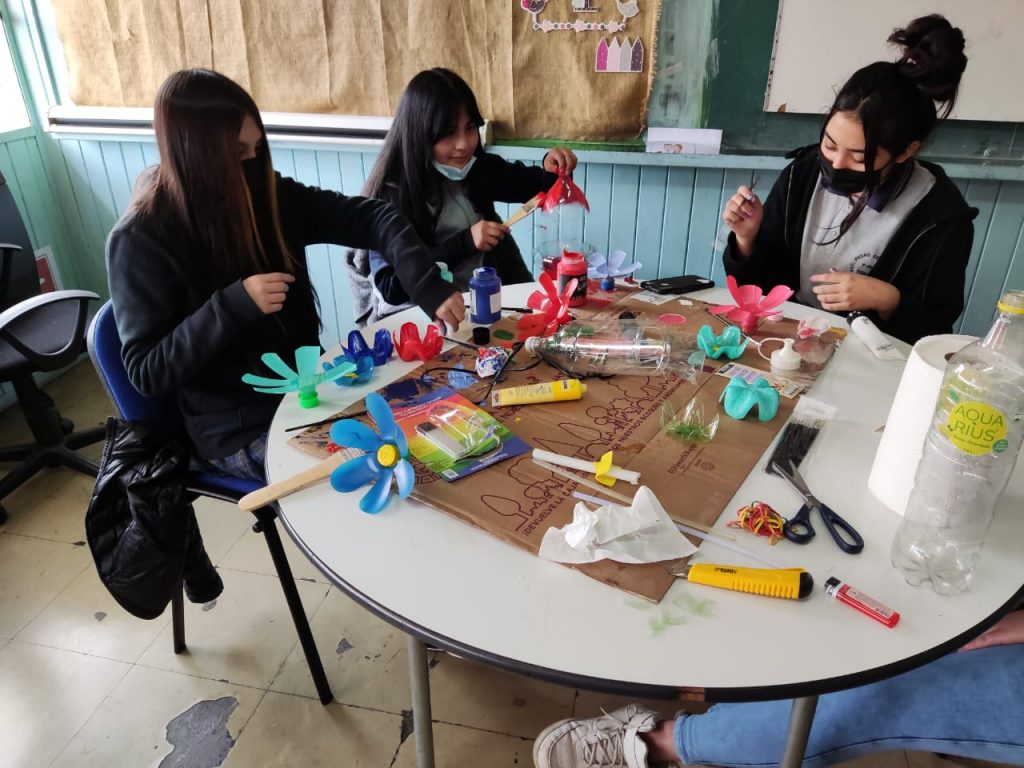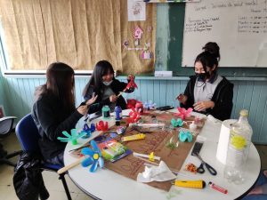 Los estudiantes de 7mo y 8vo, participan del Taller Formando Lideres junto a la Docente a cargo Srta. Natalia Toro Toro Encargada de Convivencia Escolar, cuyo objetico es reutilizar materiales de la basura doméstica como forma de contribuir a la conservación del medio ambiente.