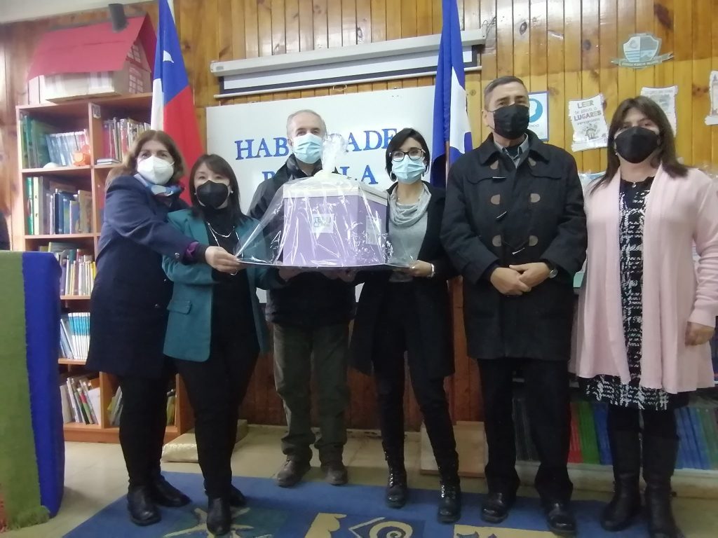 En esta oportunidad, se hizo entrega de un kit socioemocional con diferentes juegos terapéuticos y estuvieron presentes el señor Alejandro Arias, Director de JUNAEB, la señora Andrea González directora de DIDECO de la Municipalidad de Temuco, don Jorge Jaramillo, Director de Programas Sociales y Nuestra directora, señora Nadia Navarro Brun.