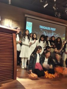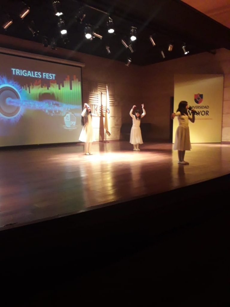 En el Salón del Aula magna de la Universidad Mayor se dieron cita los establecimientos municipales para participar del IV Versión de Trigales Fest, participando estudiantes de nuestro establecimiento Alanis Bazaez, Fernada de la Fuente, Thiare jaramillo junto a su Profesora Jeannette Concha con la canción Believer de Imagine Dragons.