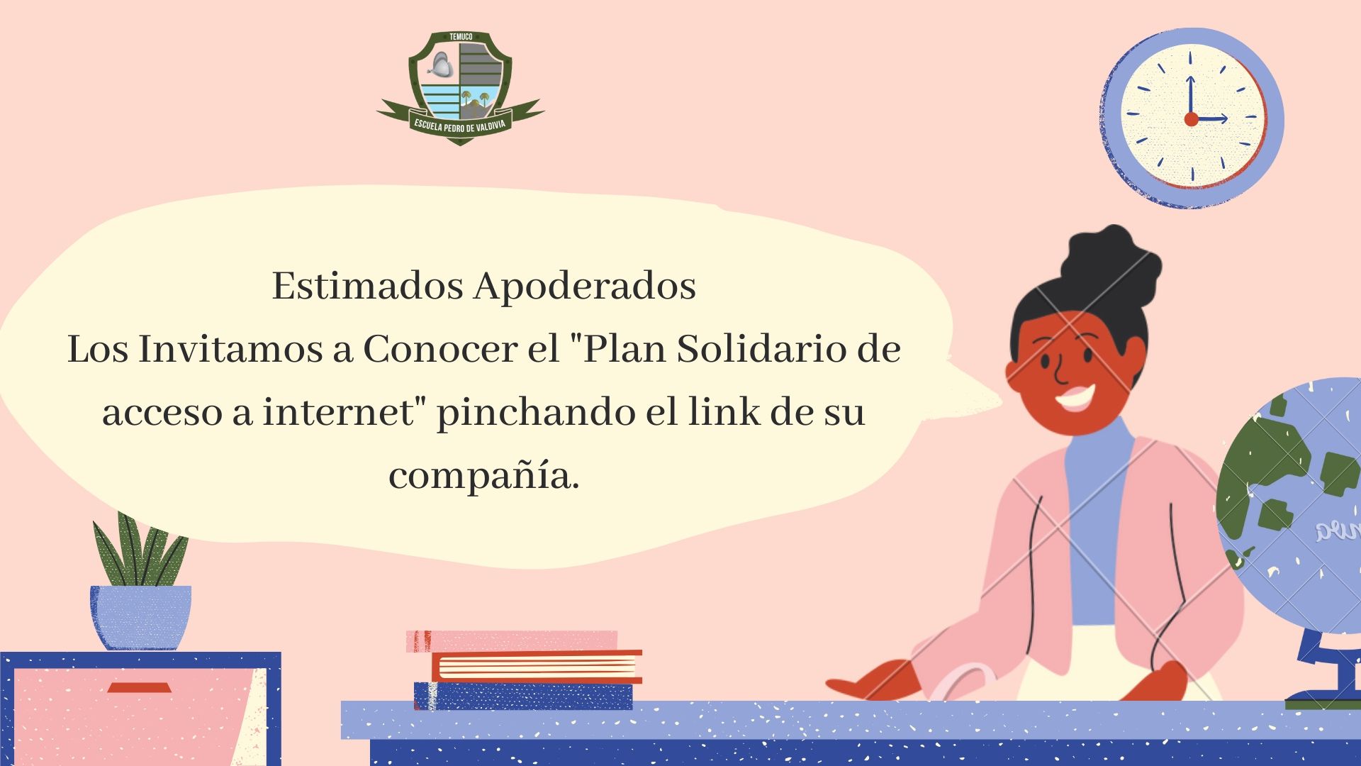 El Ministerio de Desarrollo Social ha dispuesto el “Plan Solidario de Acceso a Internet”. Si aún no ha accedido a este beneficio, lo invitamos a hacerlo mediante el vínculo que corresponda a su compañía. Postulaciones hasta el 30 de junio.