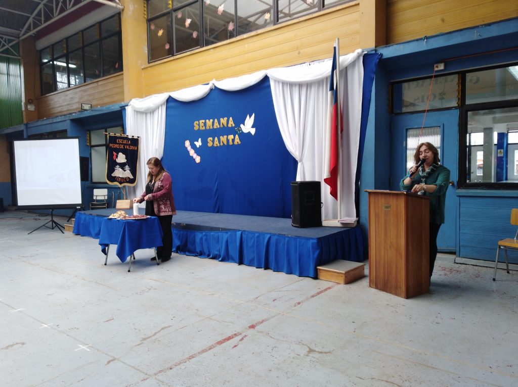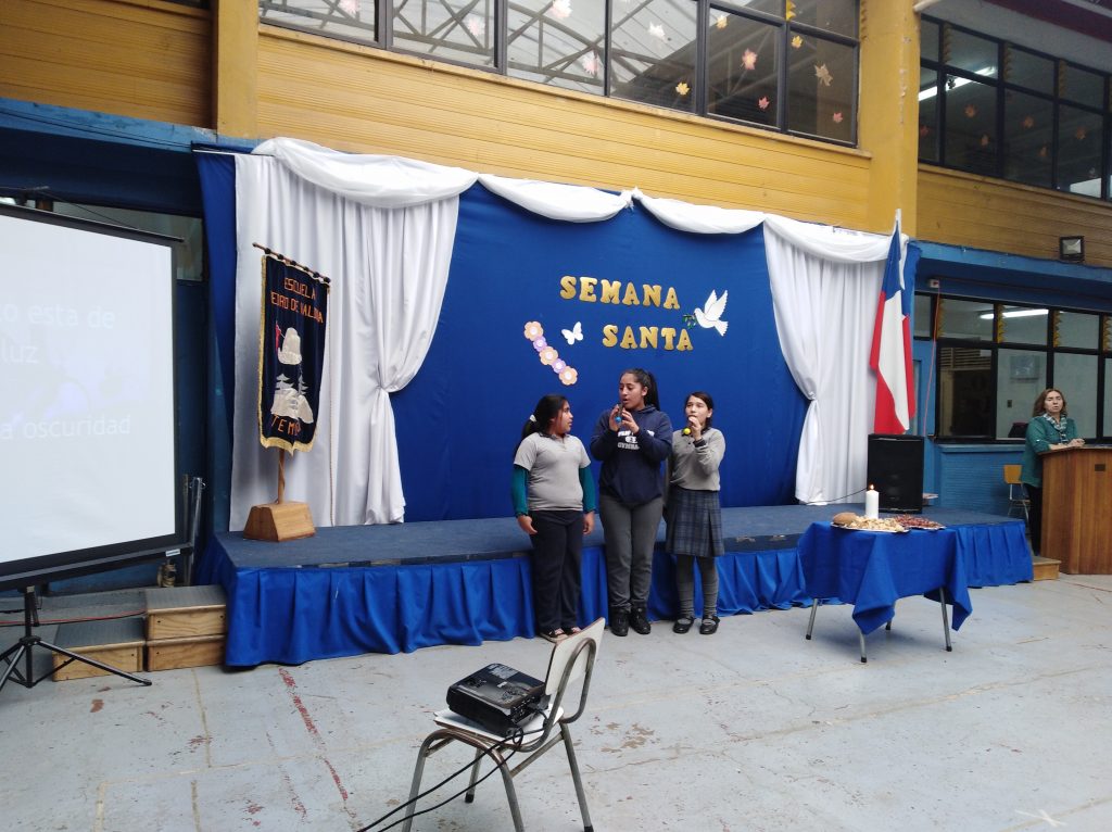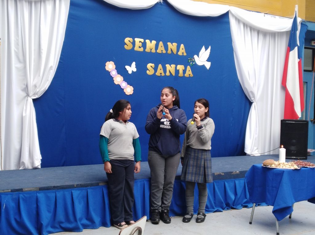 reflexión sobre el significado y la importancia de esta fecha, dirigido por la profesora Pamela Seguel y las estudiantes barbara cabezas de 8vo, celeste devincenci y Thiare Jaramillo de 6to quienes nos cantaron dos canciones cristianas.