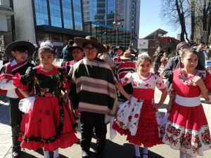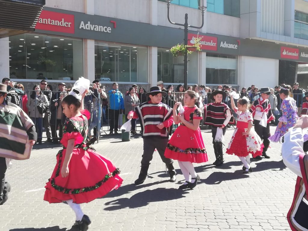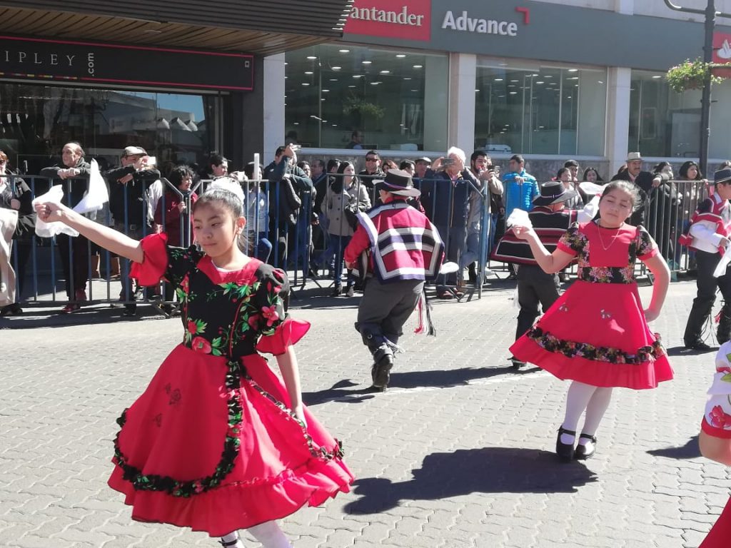 Estudiantes de la Escuela Municipal Pedro de Valdivia se presento en el saludo a la Patria que se realizó durante el mediodía en la plaza de armas.