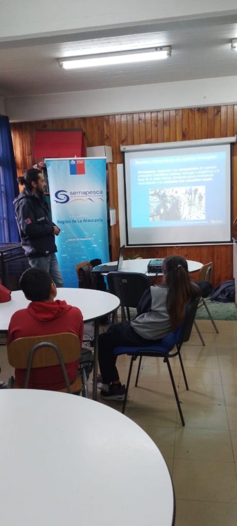 Los estudiantes de 3ro, 4to y 6to año básico, recibieron la visita de funcionarios de sernapesca, quienes les hablaron sobre la fauna marina y lo importante de cuidar los mares y ríos.
