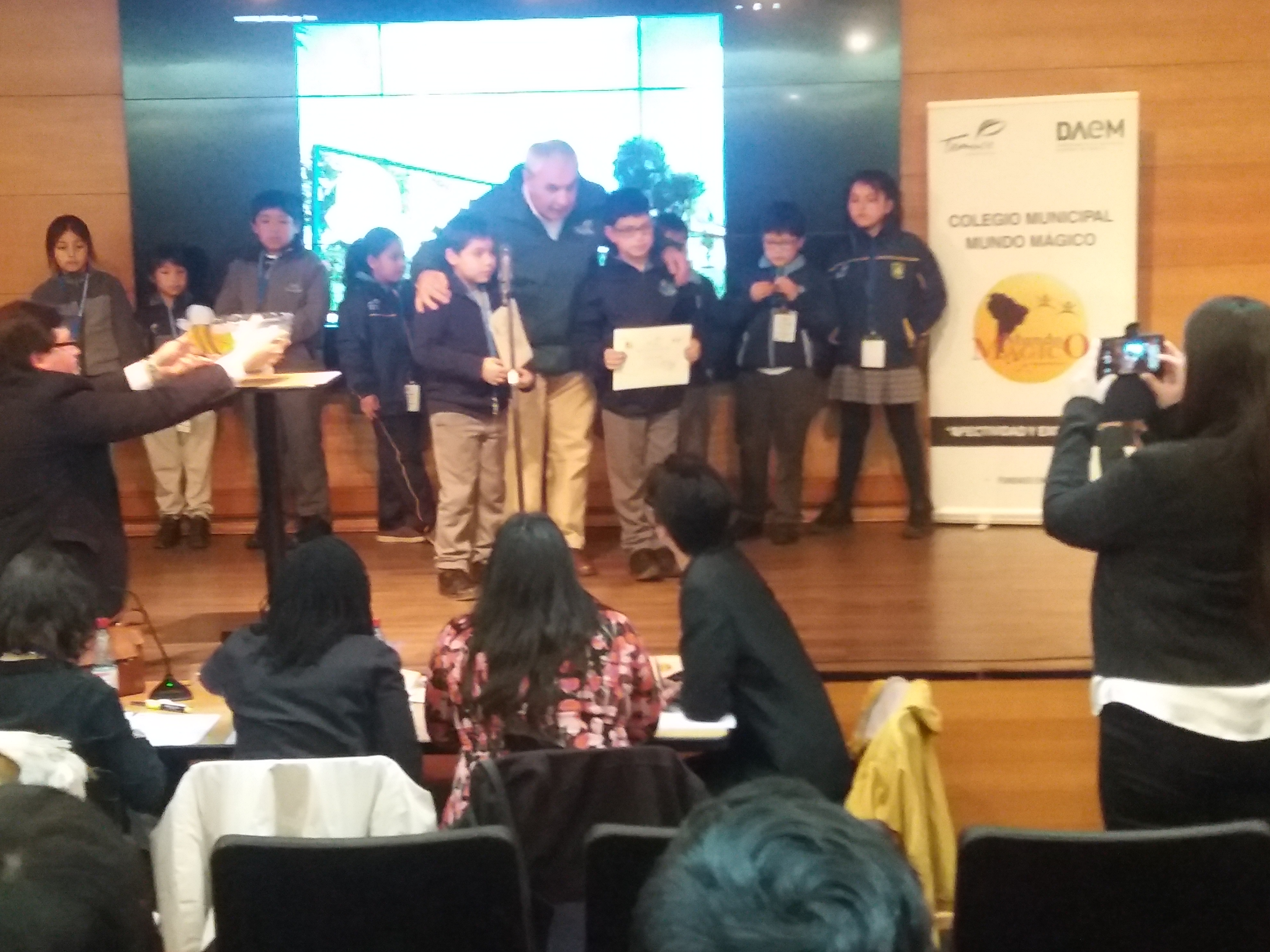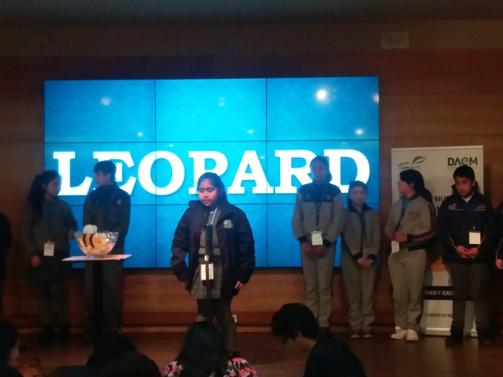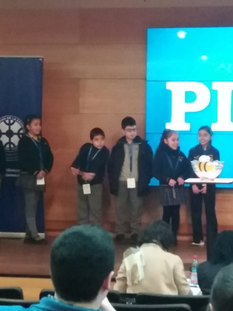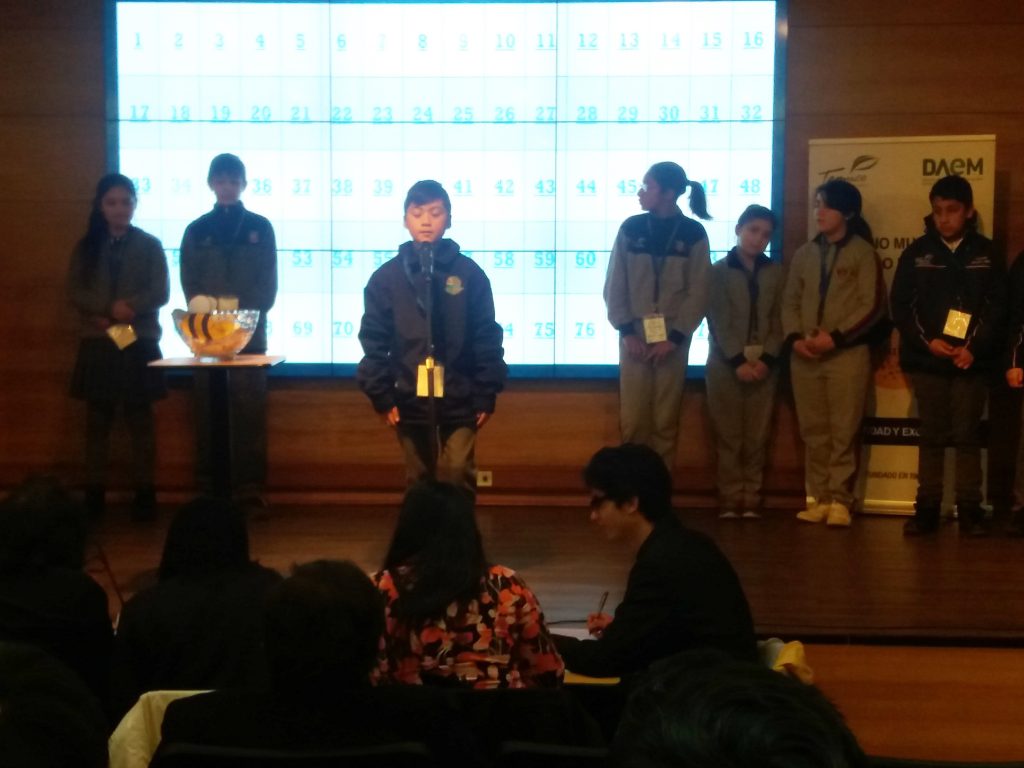Los estudiantes de la Escuela Pedro de Valdivia junto con la Profesora de ingles Jeannete Concha, participaron del concurso de deletreo en inglés, Spelling Bee Tournament 2018, en el auditorio del Selva Saavedra.