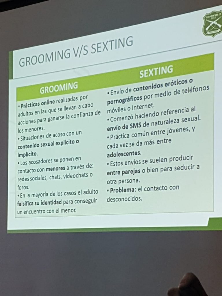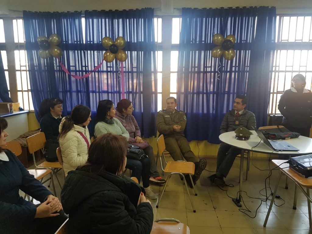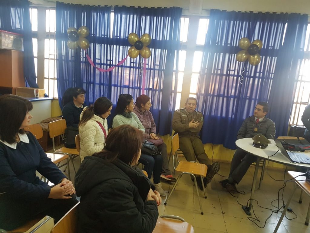Policía de Investigaciones realizo una charla a padres y apoderados acerca de la identificación del Cyberbullying, que es la agresión perpetuada a través de la tecnología, también de cómo identificar el grooming o sexting y como saber si su hijo(a) es acosado de alguna de estas maneras.