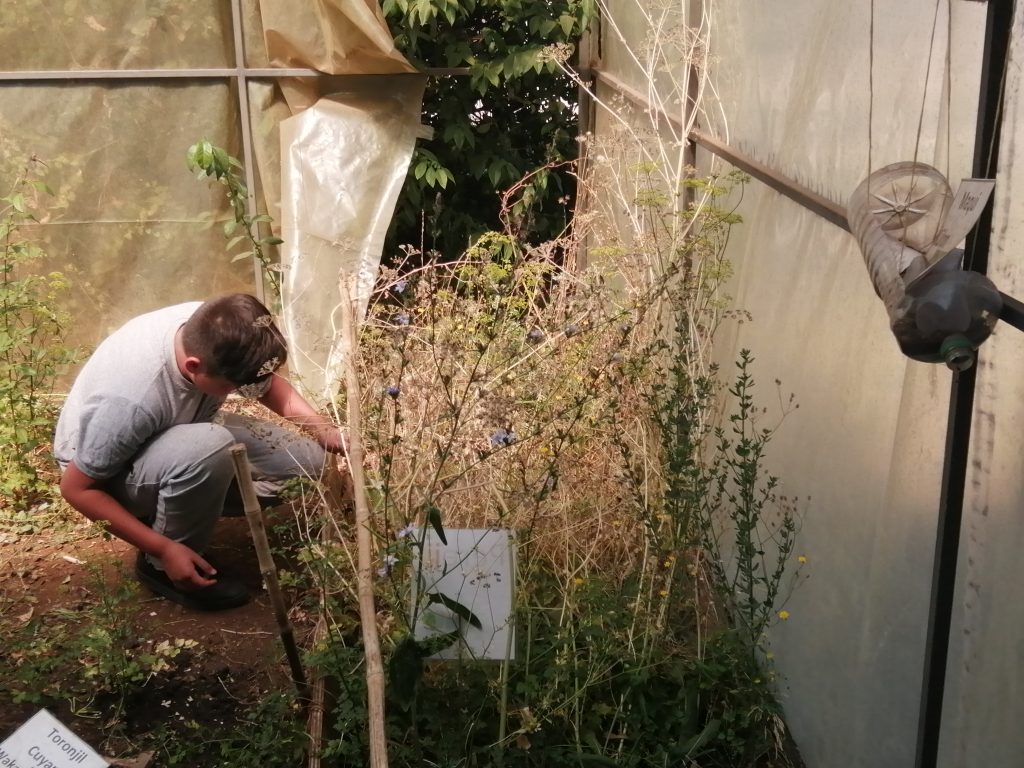 Los estudiantes de 7mo básico junto a la Profesora Bernarda Colicoy y la Educadora Tradicional Juana Lemunao, comenzaron con los arreglos del invernadero, sacando la maleza y limpiando bien para que no quede rastro de mala hierba para así de esta forma poder sembrar nuevas plantas medicinales, que utilizándose en las situaciones en que los estudiantes tengan dolencias se pueden preparar sus infusiones de hierbas medicinales.